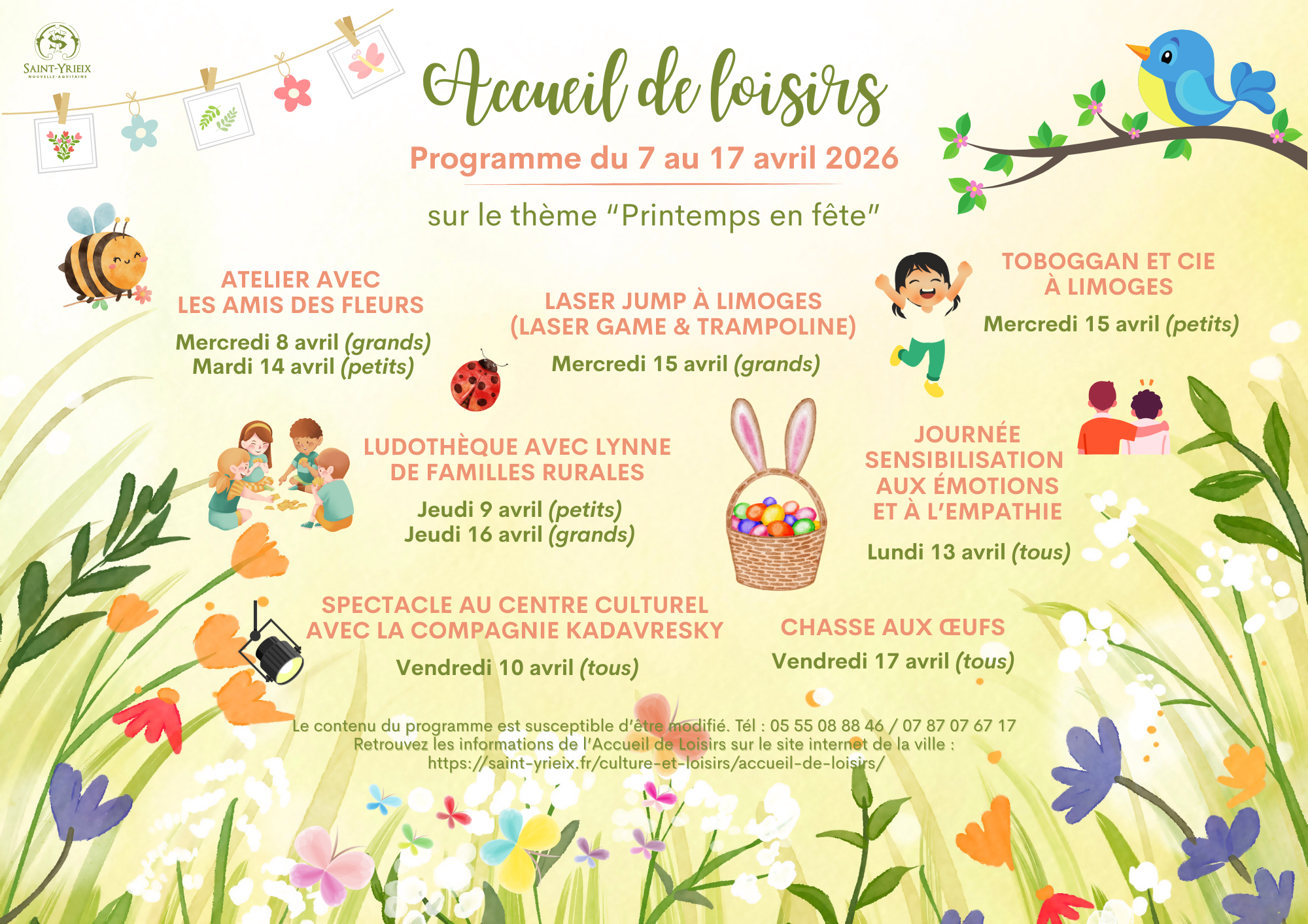 L’accueil de loisirs des petites vacances scolaires accueille les enfants dès la scolarisation. Il se déroule à Jules-Ferry et fonctionne pendant les vacances de Toussaint, de février et de Printemps (le centre ne fonctionne pas durant les vacances de Noël). De 7h30 à 18h.